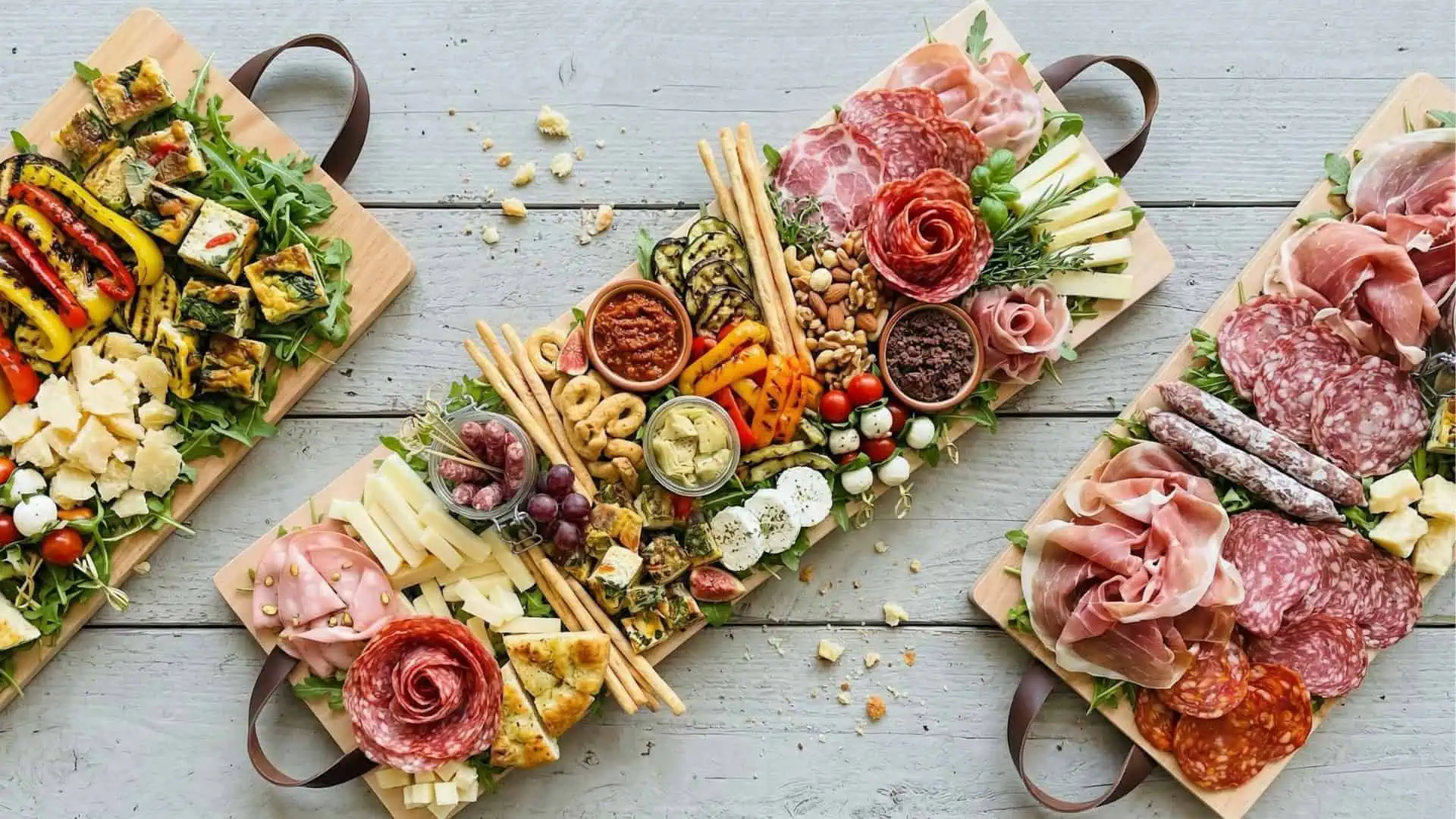 Italiaanse vleeswaren, kazen, gegrilde groenten, olijven en tapenade